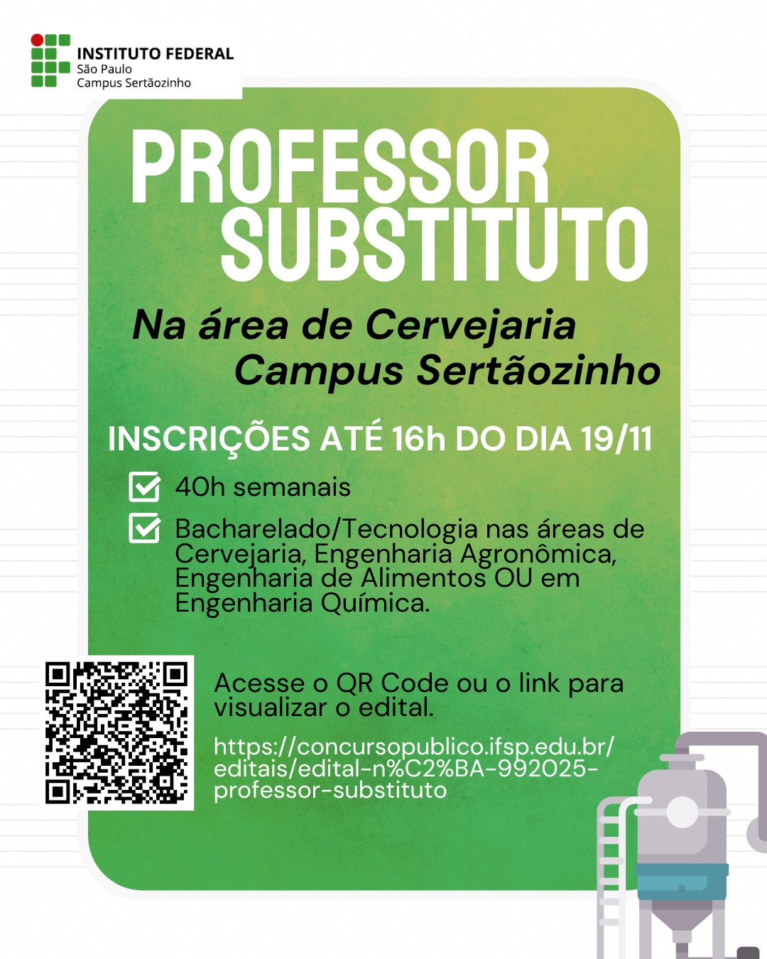 Processo Seletivo de Professor Substituto Campus Sertãozinho - Área Cervejaria