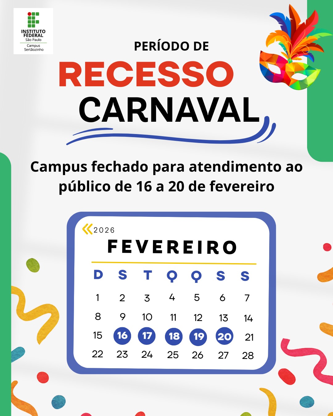 Recesso de Carnaval – IFSP Campus Sertãozinho